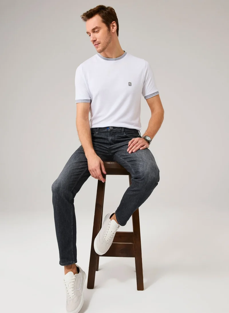جينز بقصة مستقيمة وخصر متوسط وغسيل حمضي