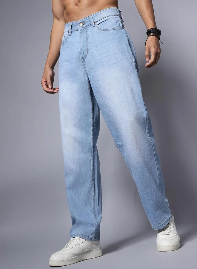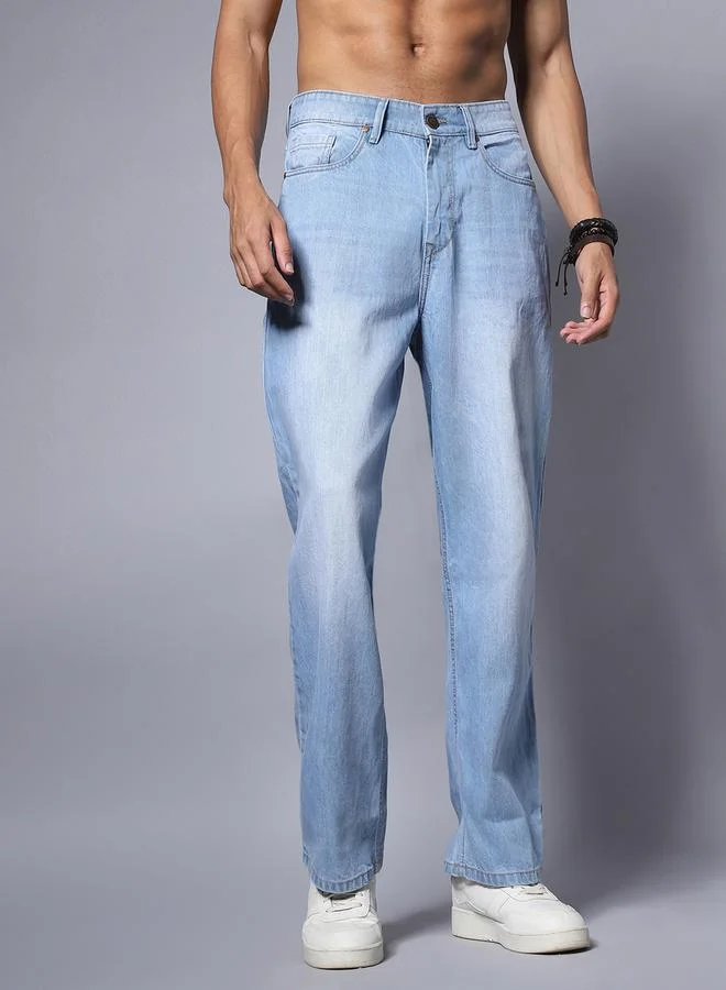 جينز بقصة مستقيمة وخصر متوسط وغسيل حمضي