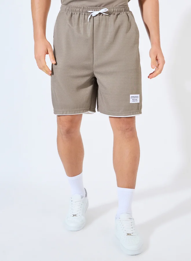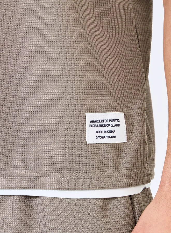شورت مع تيشيرت فضفاض محبوك بنمط وافل