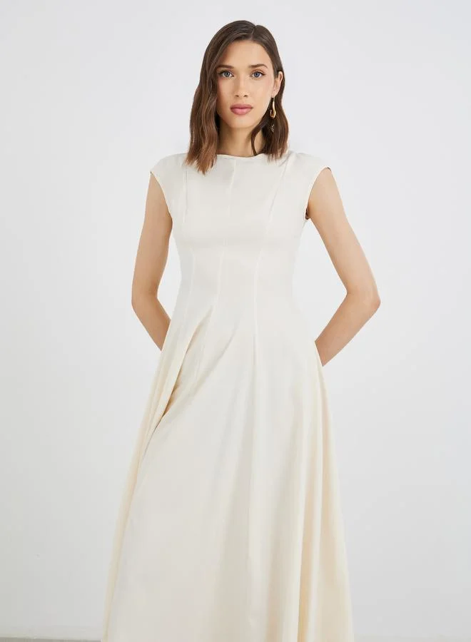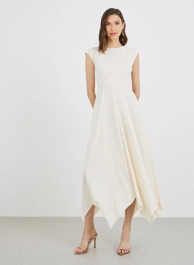 فستان ميدي A-Line بحافة غير متساوية بلون سادة